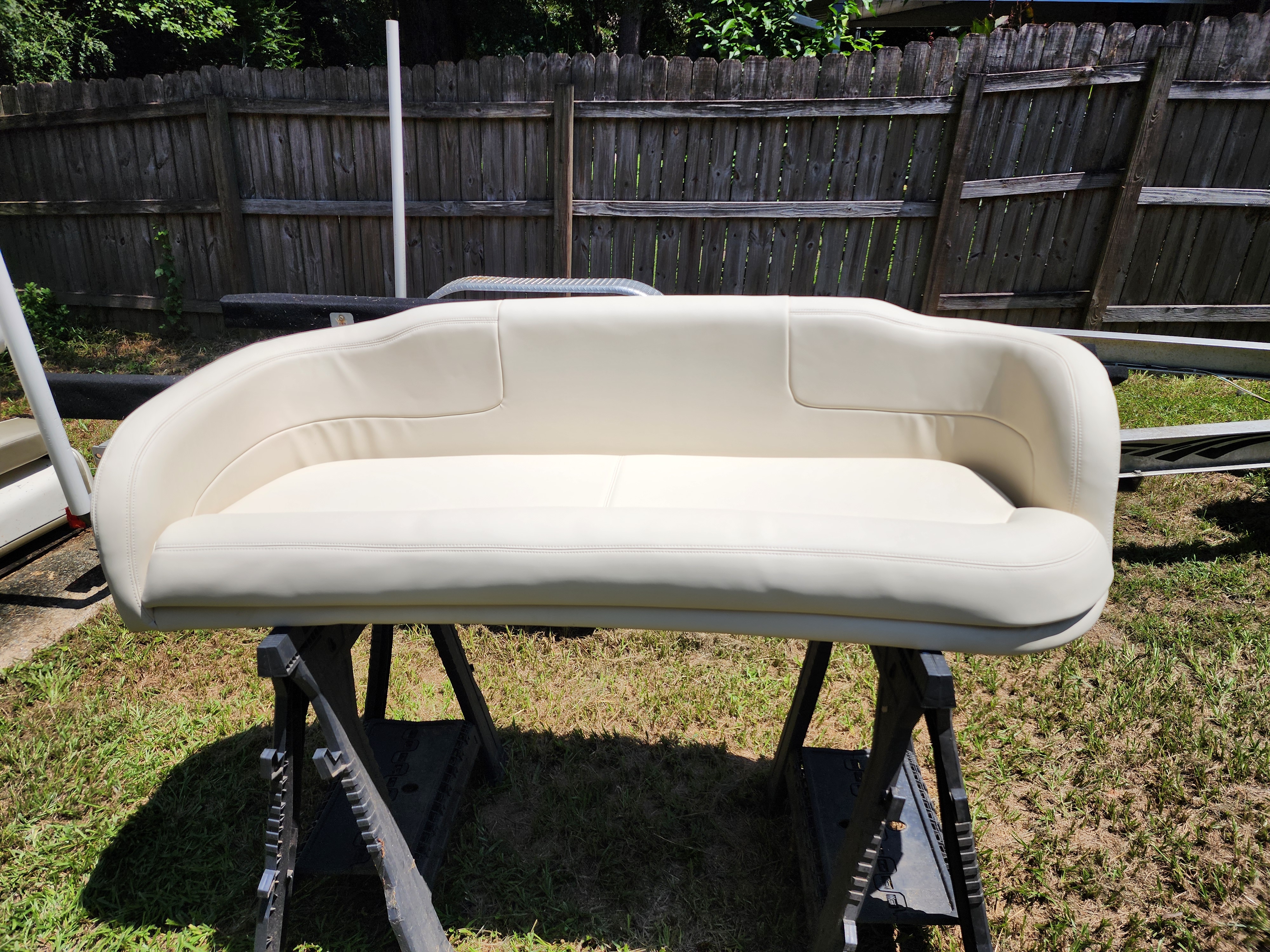 New foam and fabric for helm seats, bow cushions, cockpit seating, and sun pads. We use marine-grade vinyl and Sunbrella fabrics rated for UV and mildew resistance.